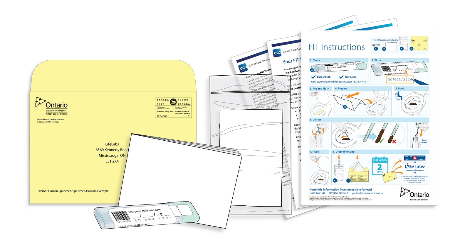 If you don’t have a healthcare provider, you can get your FIT on the Screen for Life Coach (807-684-7777) or by calling Health811. The test does not require a doctor referral and is covered by OHIP for eligible individuals. To learn more, visit tbrhsc.net/colon-cancer-screening.