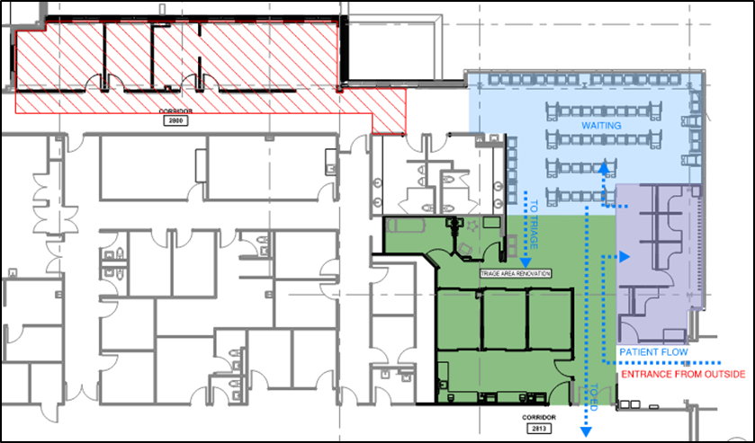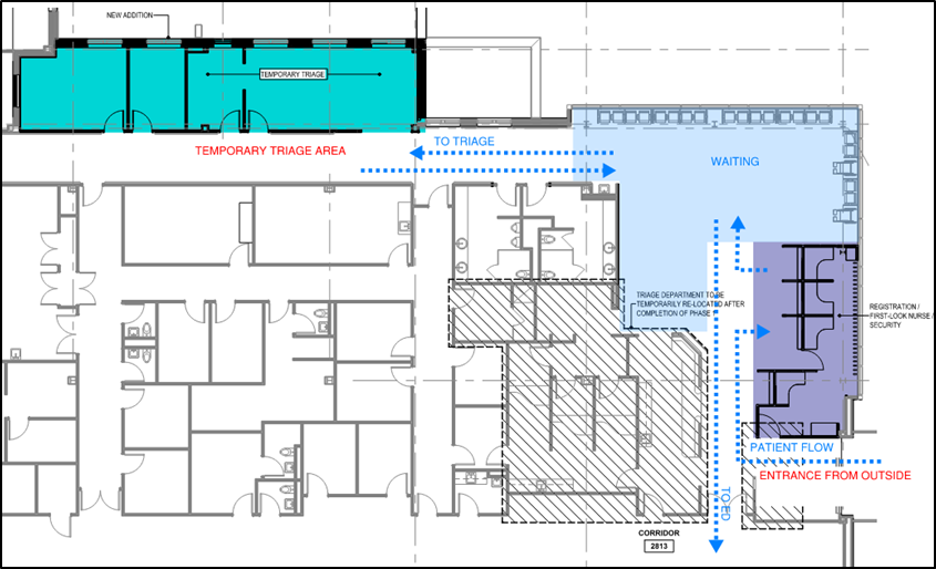 Phase 2: Triage Area construction and temporary relocation of Triage to the new Administration Area (impact to patient flow)