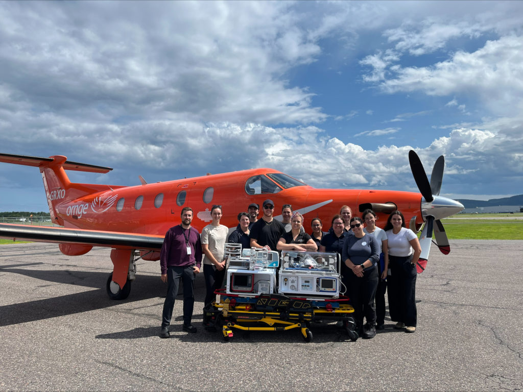 This highly skilled team is comprised of a Registered Nurse and a Registered Respiratory Therapist who travel aboard an ORNGE aircraft to retrieve children (primarily under one year of age) and transport them to a higher level of care, either at TBRHSC or a specialized children’s hospital.