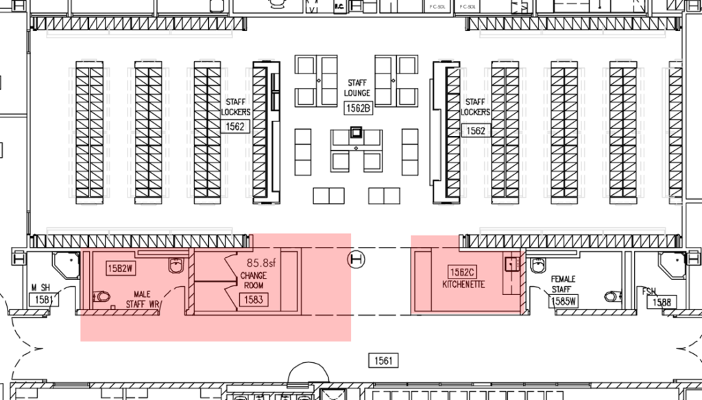Renovations to the Level 1 Washroom (1582W), Staff Change Room (1583), and Kitchenette (1562C) are scheduled to commence the week of Monday, January 5, 2026, with an anticipated completion in April 2026.