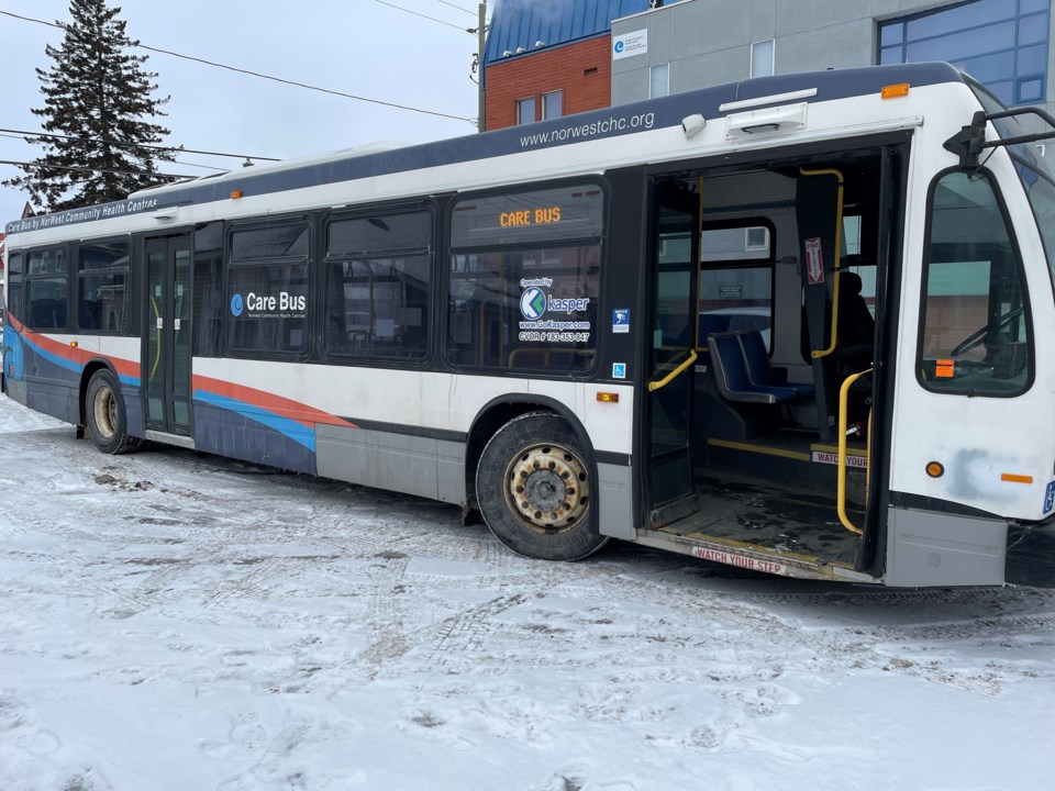 The Care Bus in Thunder Bay is a free, mobile warming center and outreach service operated by NorWest Community Health Centres from late fall to early spring. It offers a warm space, hot meals, harm reduction supplies, and transport to services daily including TBRHSC.