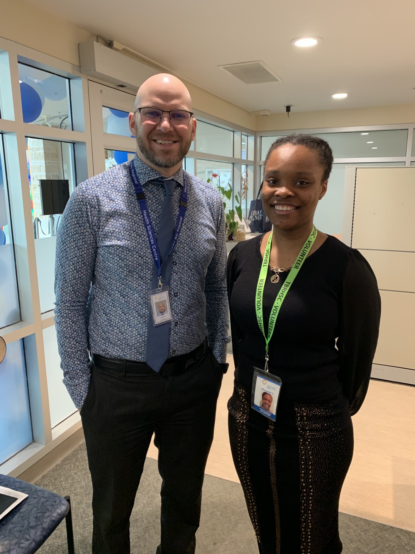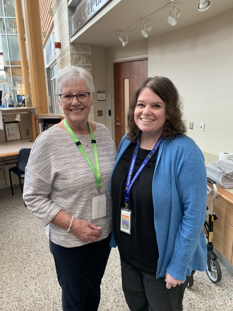 Craig Kozlowski, Director, Patient Flow and Partnership, with Idongesit Usua, Patient Experience Survey Volunteer.Mary Anne Fossum, Wayfinding Volunteer with Crystal Edwards, Director, Women & Children’s and Adult & Forensic Mental Health Programs, and Cathy Britt, Wayfinding Volunteer.Heather White, Wayfinding Volunteer with Kristin Shields, Director, Quality and Risk Management.Jennifer Fawcett, Director of Academics & Academic Family Health Team with Lisa Rozenbergs, Emergency Department Volunteer.