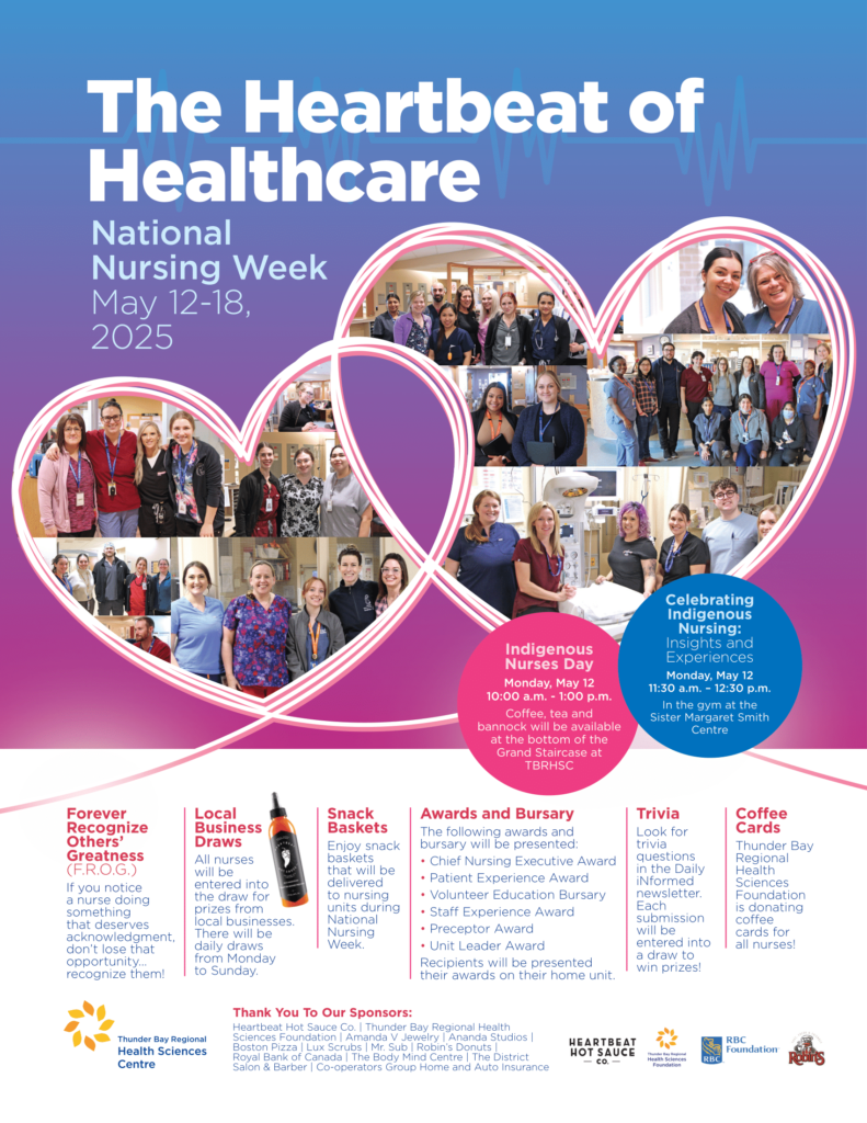 Join Thunder Bay Regional Health Sciences Centre and St. Joseph’s Care Group for an Indigenous Nurses Panel, on May 12, to celebrate Indigenous Nurses Day. See poster below for more information!