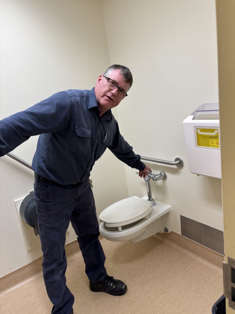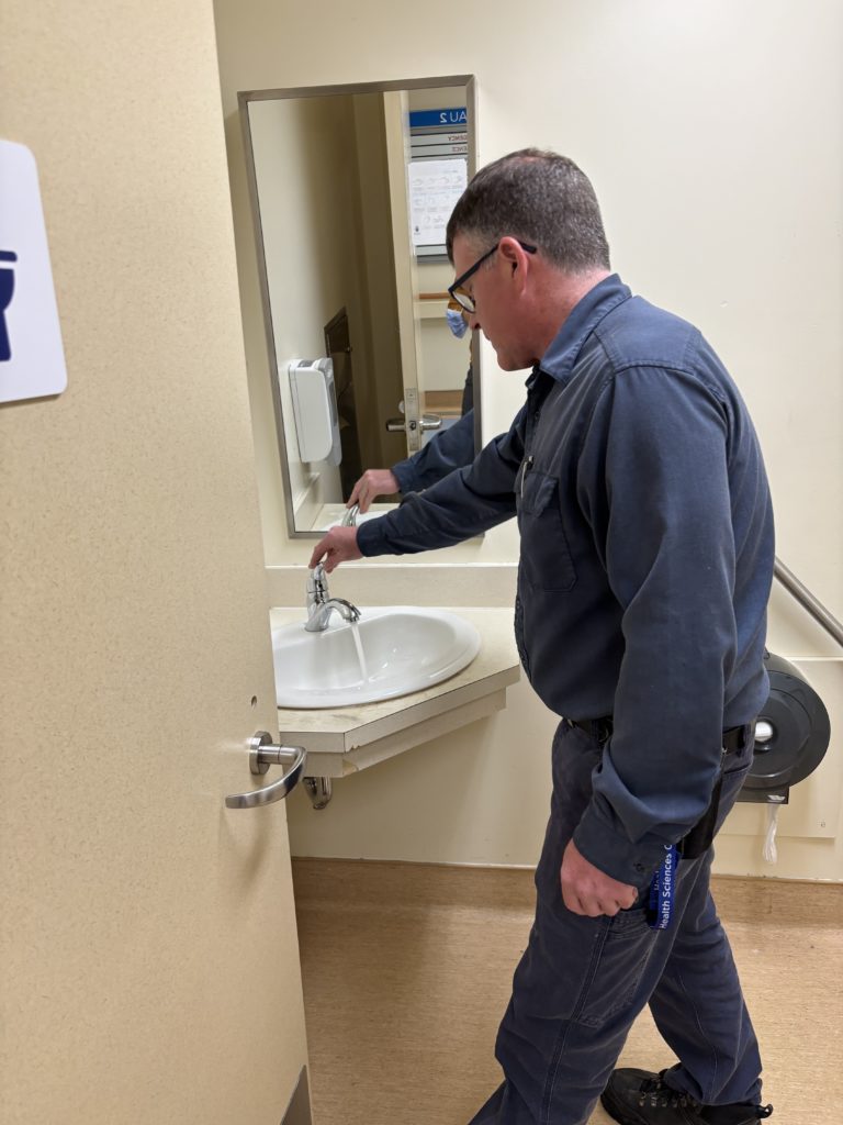 Dan is on call 24/7 for plumbing emergencies, and often has to come in early or stay late, to ensure a safe environment for staff and patients. “I just think about how if it was my mom whose bathroom wasn’t working, would I want her to go all night without a working toilet? No. So I come in to ensure patients have access to functioning bathrooms, clean water, whatever plumbing needs to be done to prioritize their safety,” says Dan.