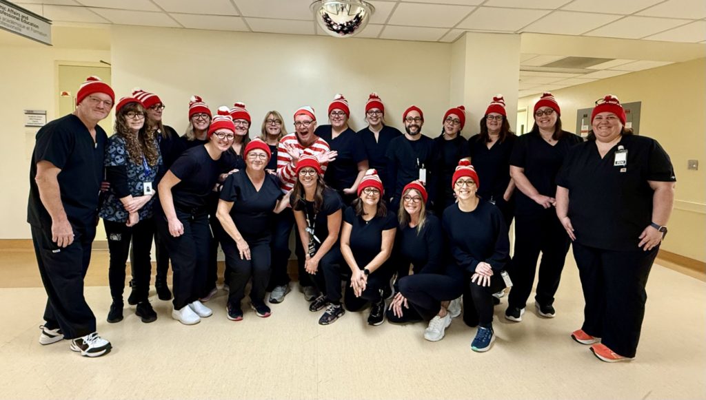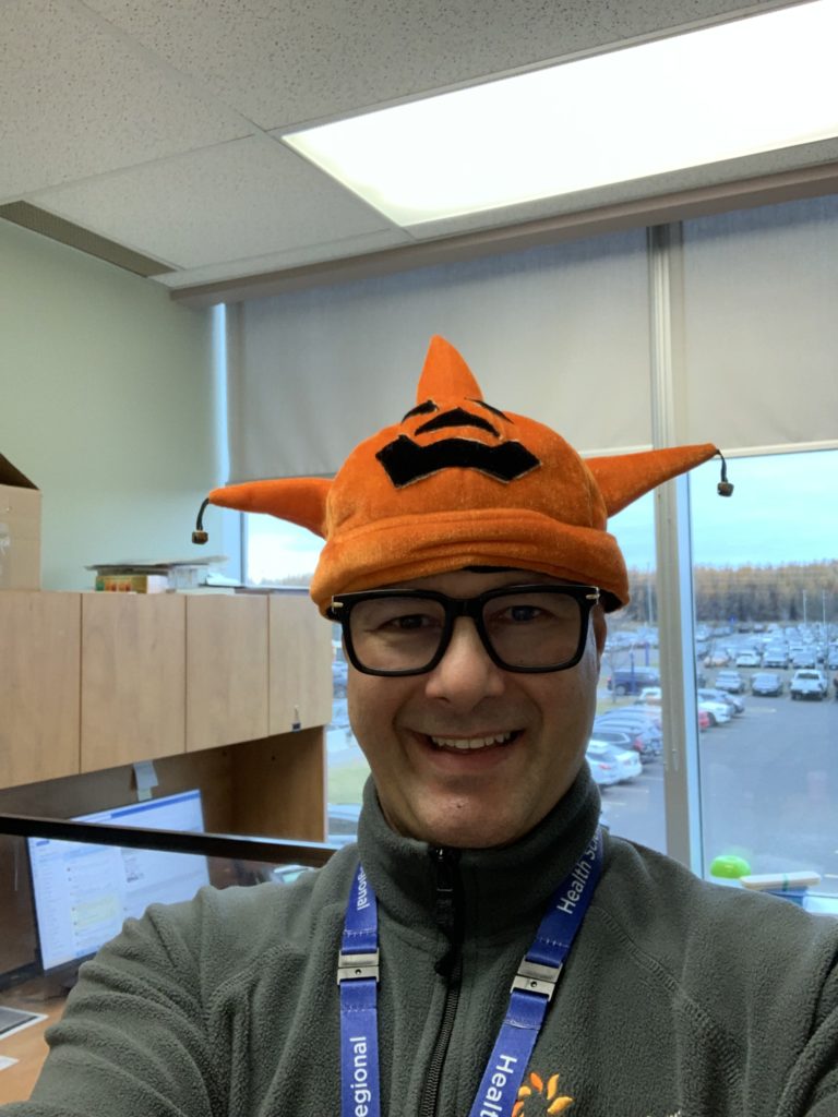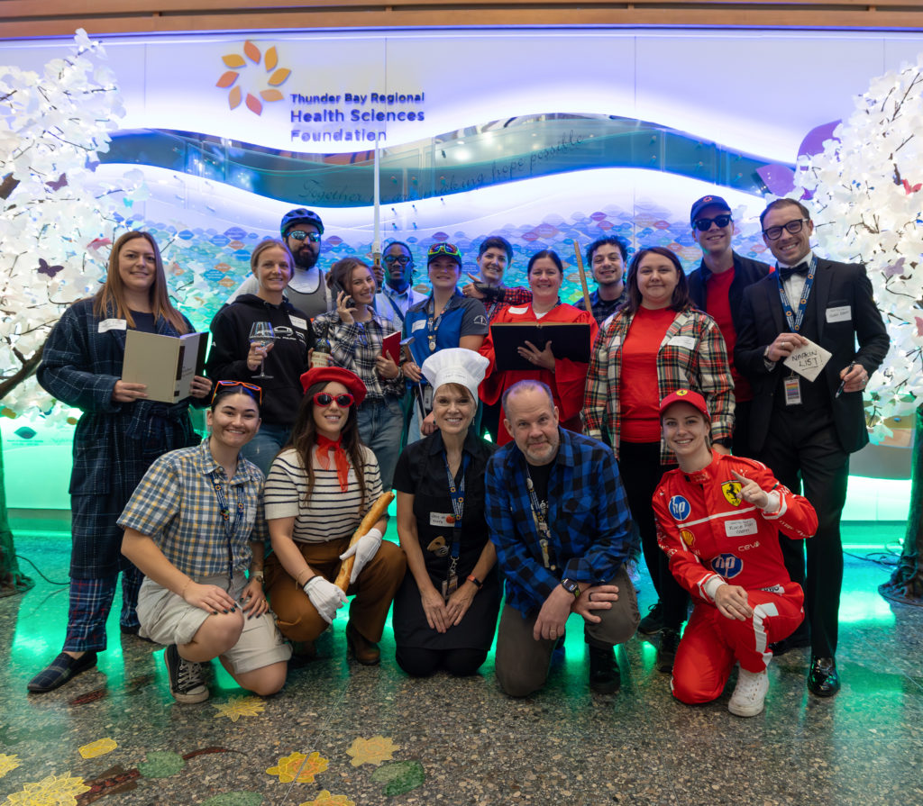 Regional Cancer Care Northwest (‘Yeeehaa!’)Women & Children’s Program, and Adult & Forensic Mental Health.Paediatrics (‘Let’s Go Blue Jays!’)It’s the Thunder Bay Regional Health Sciences Foundation team all dressed as different versions of Glenn. We have: (back) Santiago as Cyclist Glenn, Daniel as Nerd Glenn, Lindsay DB as Broken Wrist Glenn, Marco as Teacher Glenn, Torin as 50/50 Glenn; (middle) Jennifer as Nighttime Glenn, Chantal as Wine Glenn, Cassandra as Phone Call Glenn, Lindsay P as Golfing Glenn, Shelley as Choir Glenn, Shelby as Christmas 50/50 Glenn, Connor as Gala Glenn – complete with napkin list; (front) Jenelle as Summertime Glenn, Laura as Paris Glenn, Lee-Anne as Cooking Glenn, Glenn as Glenn Glenn, Haley as Race Fan Glenn.Staff from the Accounts Payable, Payroll and Staffing departments.Dr. William Harris and Dr. Chiachen Cheng.Prevention and Screening Clinical Services.Surgical Day Care (‘Where’s Waldo?’)Neonatal Intensive Care Unit (NICU).Palliative Pain And Symptom Clinic.Post-Anesthesia Care Unit.Health Records.Nutrition and Food Services (‘The “Spice Girls” with their tour manager’).Nuclear Medicine.Lyra Ferguson, Regional Cancer Care Northwest.Adult Mental Health (‘Saucy Posse’).Patient Heather and Patient Flow Coordinator Dawne dressed as Waldo. Heather spread Halloween spirit throughout the day, handing out candies to hospital visitors and staff. Rajesh Talpade, NP, who works in the Internal Medicine Clinic.