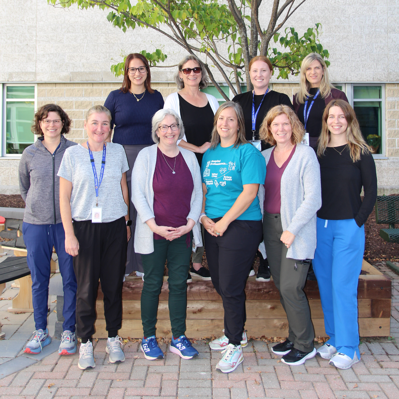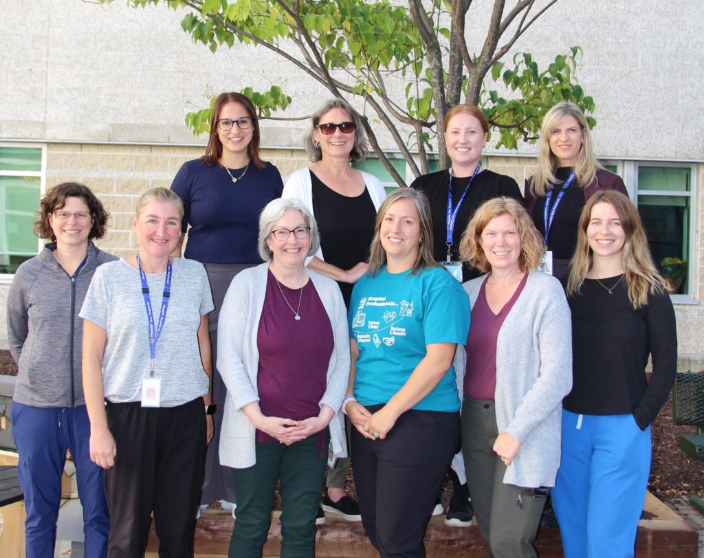 Occupational Therapists (OTs) at Thunder Bay Regional Health Sciences Centre. Back row (L-R): Andraya Bergson, Denette Egeberg, Celia Barry, Roxane Siddall Front row (L-R): Julie Colbourn, Kerry Brosseau, Laura Swancar, Ginette Antoniak, Lindsay Johnson, Kate Adams. Not pictured: Jane Horiguchi and Val Walser.