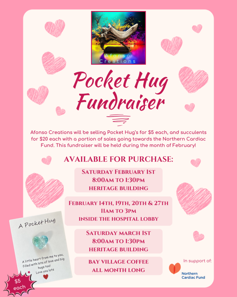 Each Pocket Hug is just $5, and succulents are $20, with a portion of all proceeds going towards the Northern Cardiac Fund. It’s the perfect way to show someone you care while supporting a great cause. Whether you’re looking for a little gift or something to brighten someone’s day, these thoughtful items are sure to bring a smile.