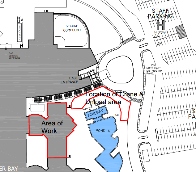 Staff that enter/exit the facility via the East Entrance will have to follow similar detours as per previous phases, utilizing Elevator-01, Stair C and Stair-I.