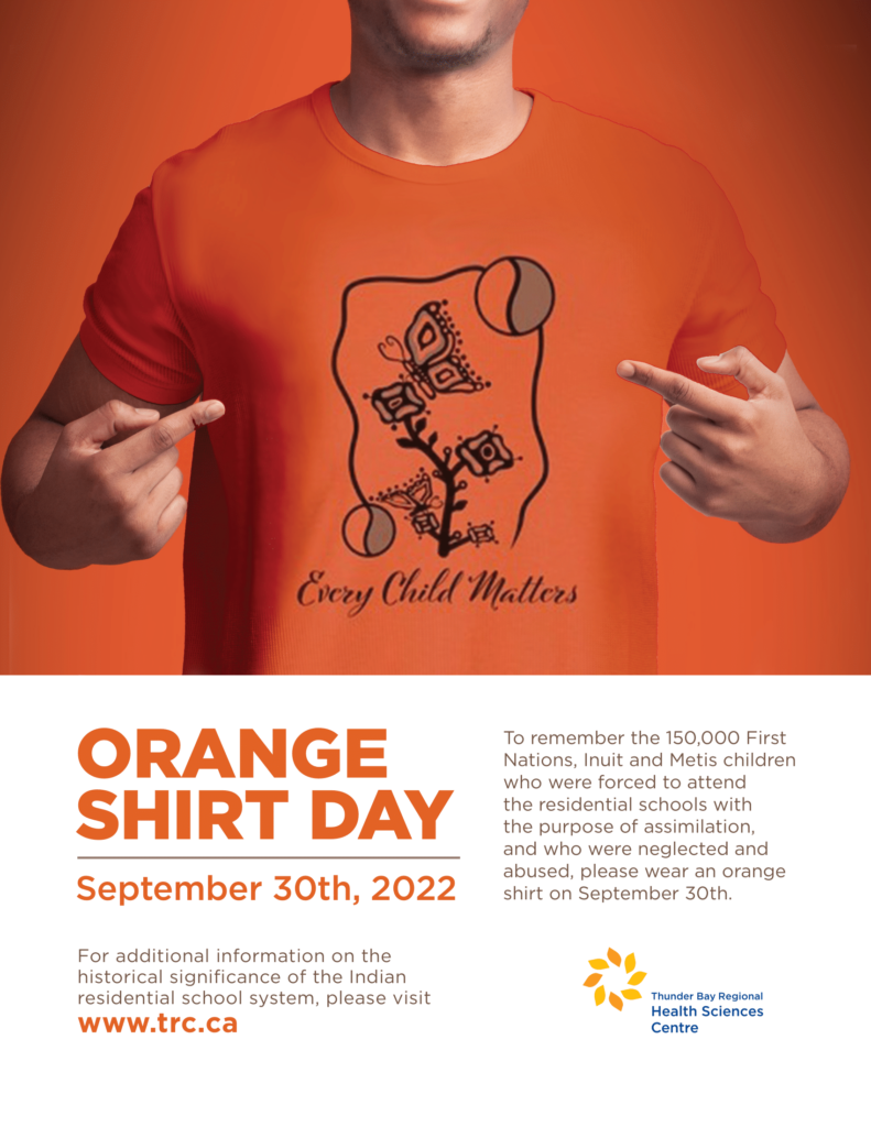 “Today, we honour the lost children and survivors of residential schools, their families and communities. Public acknowledgement of the tragic and painful history and ongoing impacts of residential schools is a vital component of the reconciliation process,” said Dr. Rhonda Crocker Ellacott, President and CEO, TBRHSC and CEO, Thunder Bay Regional Health Research Institute. “We take our role in Truth and Reconciliation as a regional acute care provider very seriously, and have undertaken a number of initiatives to support healing and reconciliation.”