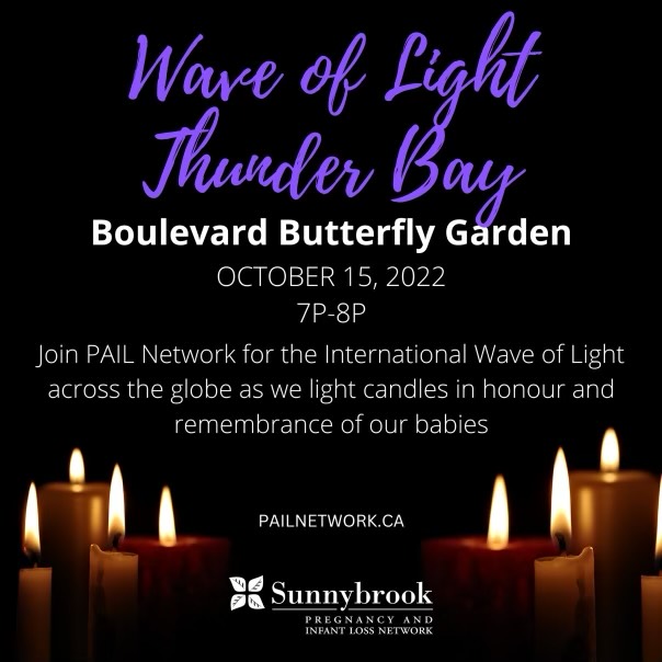 You can join the Wave of Light in Thunder Bay at Boulevard Butterfly Garden on October 15, 2022 from 7:00 p.m. to 8:00 p.m. ET.