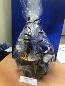 Baking basket with sweet popcorn, chocolate, cookies and brittle (Sponsored by CIBC): Martina Nuttall, Mental Health Outpatient Clinic