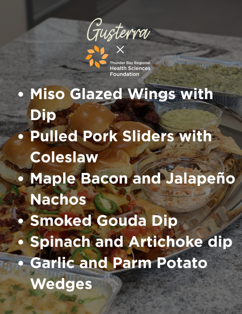Local catering company Gusterra is serving up ready-to-heat game day appetizer platters, with proceeds supporting life-saving cardiac care right here at home through our Northern Cardiac Fund.